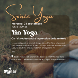 On termine la séance avec une belle séance de Yin, pour laisser travailler le corps en profondeur.